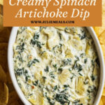 Serve your creamy spinach artichoke dip hot with chips, crackers, or toasted baguette slices. I personally love pairing mine with pita chips because they hold up well and add a nice crunch. And don’t forget to grab a spoon — sometimes the best bites come scooped up solo!