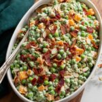 A fresh and flavorful pea salad combining tender peas with crispy bacon, sharp cheddar cheese, and toasted almonds, all tossed in a creamy, herb-infused dressing. Perfect as a side dish for picnics or gatherings.